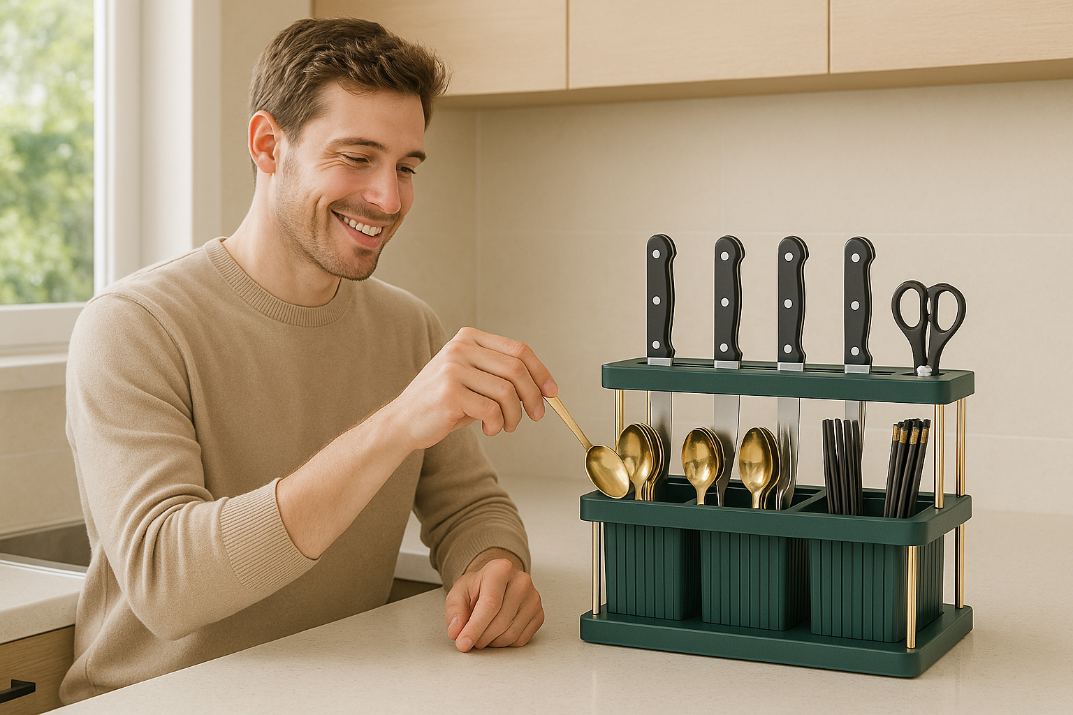 Organizador Multifuncional de Cuchillos y Cubiertos – Estilo + Orden en tu Cocina